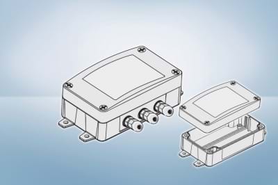 Wall mounting feet are integrated. The internal bosses for self tapping screws allow mounting of PCB horizontally or vertically. The lid and base are fitted together with a tongue and groove sealing system with an gasket.