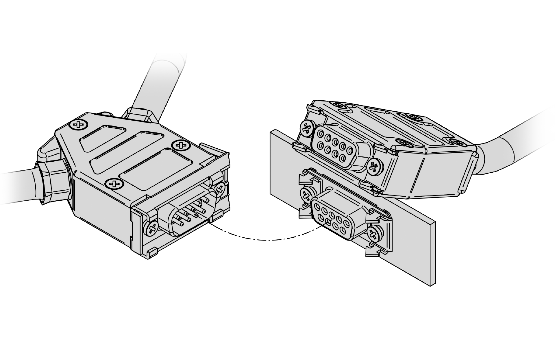 Slide locks and automatic slide locks are used especially for D-Sub interconnections with frequent reconnect cycles or for difficult mounting locations where a screw-on locking would be problematic being either difficult to reach or very time-consuming to operate.
