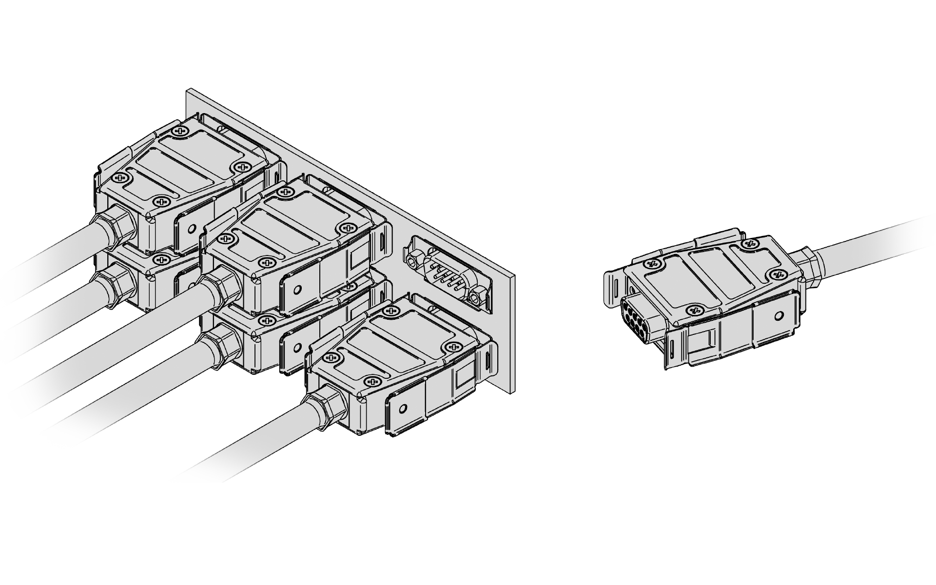 M1/M2 series with slide lock for 9- up to 50-way D-Sub or 15- up to 78-way HD connectors